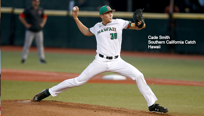 July 25, 2018 La Mirada, CA Cade Smith (Hawaii) struck out five in five innings of one-run ball, Daniel Jung (Notre Dame) had a game-high three hits and David Martinez (Austin Peay) hit a pair of doubles and scored three times to lead the Southern California Catch to a 7-2 win over the Arroyo Seco Saints today at Biola University. Smith retired ten of the first twelve batters he faced and 15 of 20 overall in his five inning stint. He allowed only three hits, a single by Mitch Kerner in the second inning, a single by Cameron Briggs (UC Davis) in the third and a two-out double by Briggs in the fifth that drove in a runner who had reached base after being hit by a pitch for the only run Smith allowed. Smith left the game leading 4-1 after the Catch scored a run in the second inning without the benefit of a hit, and a wild pitch and a Skyler De Los Reyes (UC Riverside) two-run single in the fifth plated three. After a walk and Martinez' first double put two runners aboard with one out in the sixth inning, Jung plated two more Catch runs with his third single of the game to make the score 6-1, and, in the eighth, Martinez led off the inning with his second double and scored his third run of the game when Kristian Franklin (Grambling St) hit an RBI-double. Taed Heydinger, Deylen Miley (Tiffin), Tayt Smith (ASU) and Anthony Mayorga each pitched one inning in relief of Smith, Heydinger and Miley retiring the side in order in the sixth and seventh innings, respectively, and Smith struck out two in the eighth but allowed three hits, including a Cooper Williams (New Mexico St) RBI-single that drove in the Saints second run. Mayorga pitched around a two-out single in a scoreless ninth inning to secure the win for the Catch. Charles Peacock (Galveston JC) started on the mound for Arroyo Seco, striking out four in four and two-thirds innings and allowing four runs on four hits to suffer the loss. Click here for recaps of this game Elsewhere around the CCL today: Comtpon, CA Michael Neustifter (Oklahoma St) had three hits, including a pair of RBI-triples and Conor Davis (Auburn) hit an RBI-triple and an RBI-double to lead the Santa Barbara Foresters to a 13-4 win over the Academy Barons tonight at the MLB Youth Academy. Neustifter's first triple came with two outs in the first inning, driving in Ryan Cash (Oklahoma St), who reached base in all six of his plate appearances tonight, with the opening run of the game, and, eight innings later, Neustifter hit another triple, driving in two runners who had reached via walks, and then he scored the game's last run on an RBI-groundout. After the Barons tied the score in their half of the first inning on a two-out RBI-single by Joseph Argumedo (Lynn), who matched Neustifter with a game-high three hits, the Foresters scored three times in the second on Davis' RBI-double, a run-scoring single by Logan Allen (AR-Ft. Smith) and a Cash fielder's choice. Davis delivered again in the third inning, hitting a run-scoring triple, and then scored on an Allen groundout for Allen's second RBI of the game. Both teams traded runs in the fourth inning to make the score 8-2, the Foresters scoring on an RBI-single by Utah Jones (North Greenville) and the Barons scoring on a Argumedo solo home run. The Academy added two runs in the sixth inning on a fielder's choice and an RBI-double by Adam Cendejas, and Santa Barbara scored single runs in the seventh, when Allen led off with a triple and Cash drove him in with a single, and in the eighth, when Jones led off with a walk and eventually scored on a wild pitch. Four Santa Barbara pitchers combined to strike out nine in tonight's game. Kamron Fields (Texas) started the game and struck out three in four innings, Elliot Anderson (Auburn) pitched two innings with a pair of strikeouts, Dane Acker (Rice) retired six of the seven batters he faced, striking out four, and Chase Wallace (Tennessee) retired the side on order on six pitches in the ninth inning to close out the win. Nikelle Galatas (Jackson St) started on the mound for the Academy, striking out three in three-plus innings and allowed eight runs on ten hits to suffer the loss. Luke Ritter (Wichita St) hit the fourth of five Foresters triples in the game in the seventh inning. Click here for recaps of this game
