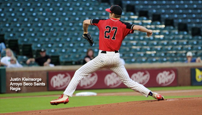 Read MoreJuly 6, 2019 Thousand Oaks, CA Eli Riechmann (Blinn), Justin Kleinsorge (Regis), Isaiah Ramos (Antelope Valley JC) and Zach Griggs (San Antonio) retired 15 straight batters to complete a combined five-hit, one-run pitching performance and lead the Arroyo Seco Saints to a 4-1 win over the Conejo Oaks today at Sparky Anderson Field. The dominant […]