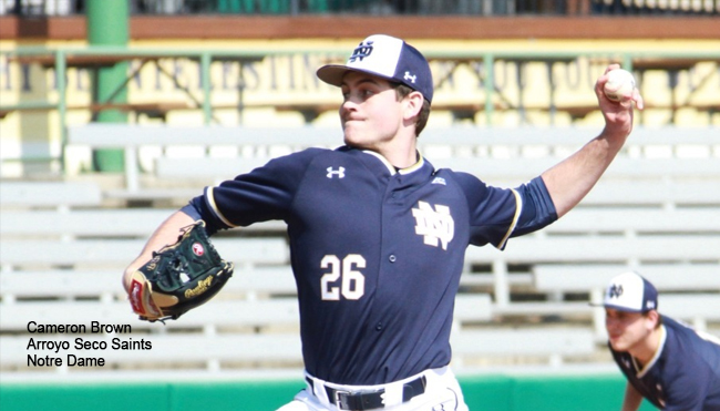 Cameron Brown (Notre Dame) started on the mound for Arroyo Seco, recording eight strikeouts in four innings of work to earn the win before turning pitching duties over to
